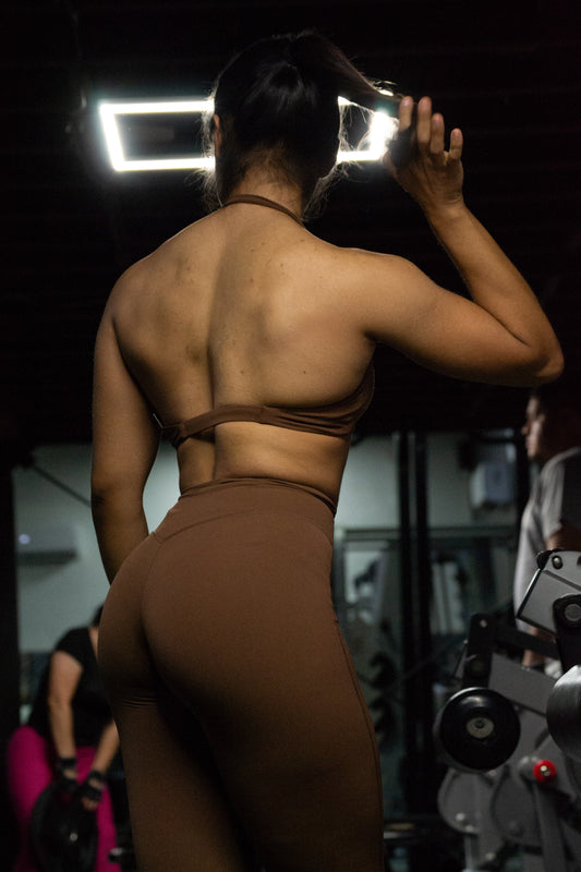 Top (cuello alto espalda abierta) & Leggins corte acampanado (negro)